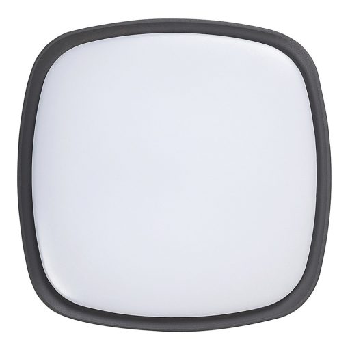 Modern megjelenésű kültéri mennyezeti lámpa beépített LED fényforrással. 25 x 25 cm széles, antracit szürke színű fém ház és műanyag lámpabúra, IP65-ös védettséggel. A beépített, A+ energiaosztályba sorolt LED fényforrás 20W teljesítmény mellett 2000 lumenes fényerőt és 4000 Kelvines, természetes fehér színű fényt biztosít. A lámpatestben a fényforrás nem cserélhető!