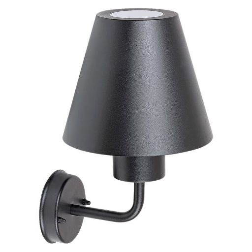 A Favara kültéri fali lámpa formáját tekintve a klasszikus, kis ernyővel ellátott olvasólámpákat idézi. Fekete színének és anyagának köszönhetően ugyanakkor ez a modell nagyon is modern benyomást tesz. A fémből készült lámpa, amelyet kerek dísztalp egészít ki, stílusos darabja lehet verandánk berendezésének. Elhelyezhetjük a bejárati ajtó mellett vagy az asztal közelében. A Favara egy darab, legfeljebb 14 W teljesítményű fényforrással használható. A foglalat típusa E27. A lámpát fényforrás nélkül szállítjuk. A kültéri lámpa méretei a következők: szélessége 220 mm, magassága 365 mm, faltól való távolsága 245 mm. IP44-es védettség garantálja, hogy legfeljebb 1 mm átmérőjű tárgyak behatolása ellen, valamint bármilyen irányból fröccsenő víz ellen védett.