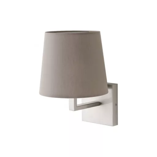 Nikkel színű fém vázas fali lámpa, szürke színű, 20cm átmérőjű, 18cm magas textil lámpa ernyővel. A lámpa több színű vázzal és ernyővel elérhető. Ezek megtekintéséhez írja be a lámpacsalád nevét (Savoy) a keresőbe.