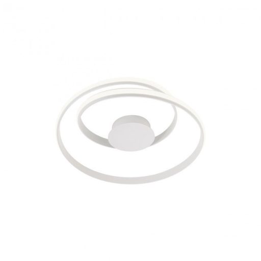 Matt fehér színű alumínium és fém mennyezeti lámpa fehér színű szilikon betétes búrával, beépített, természetes fehér színhőmérsékletű LED fényforrással. A lámpa fényereje fali kapcsoló segítségével 3 lépcsőben szabályozható.