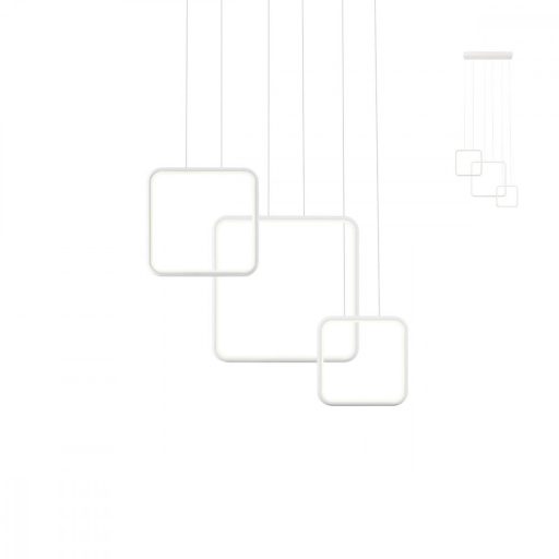Matt fehérre festett alumínium és fém függeszték fehér színű szilikon betétes búrával, beépített LED fényforrással. A lámpa fényereje fali kapcsoló segítségével 3 lépcsőben szabályozható.