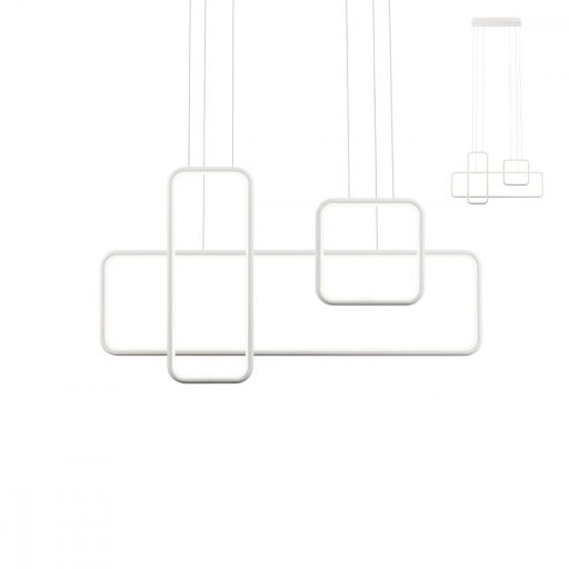Matt fehérre festett alumínium és fém függeszték fehér színű szilikon betétes búrával, beépített LED fényforrással. A lámpa fényereje fali kapcsoló segítségével 3 lépcsőben szabályozható.