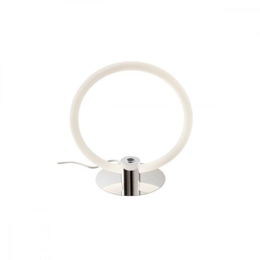 Króm színű fém vázas asztali lámpa opálos akril búrával, beépített LED fényforrással, a lámpatesten kapcsolóval. A lámpa fényereje 3 lépcsőben szabályozható.
