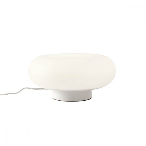 Matt fehérre festett fém asztali lámpa opálos akril búrával, beépített LED fényforrással, vezetékre szerelt kapcsolóval, szabályozható fényerővel illetve a lámpa színhőmérséklete is állítható 3000, 4000, vagy 5000K-re.