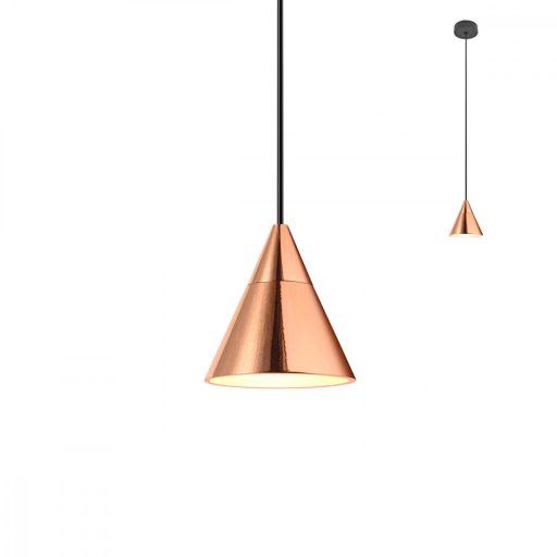 Matt fekete színre festett függesztőelemes, rózsaarany színű búrás alumínium függeszték beépített LED fényforrással.