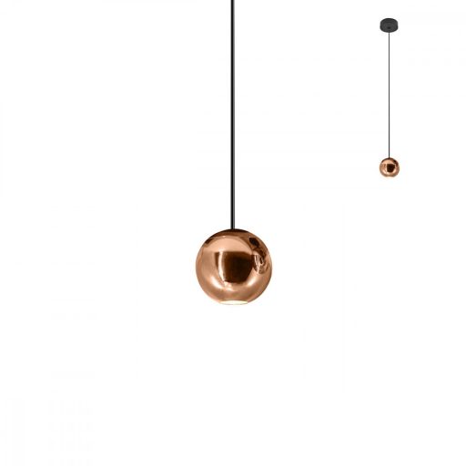 Matt fekete színű függesztőelemes, rózsaarany színű alumínium búrás függeszték beépített LED fényforrással.