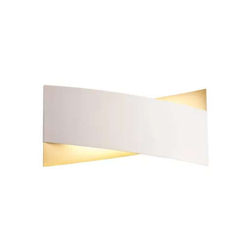 Kívül matt fehér, belül matt arany színű fém fali lámpa 17W meleg fehér fényű beépített LED fényforrással. A lámpa direkt és indirekt világít.