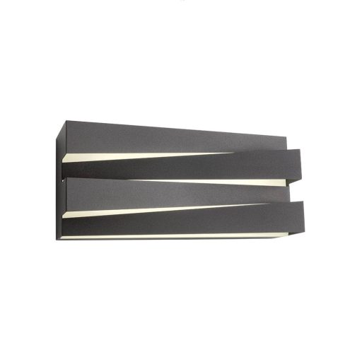 Matt fekete színű fém fali lámpa szatinált akril búrával, 26W meleg fehér fényű, beépített LED fényforrással. A lámpa elülső felén lévő cikk-cakkban álló fém részek egyedi fényszórást eredményeznek.