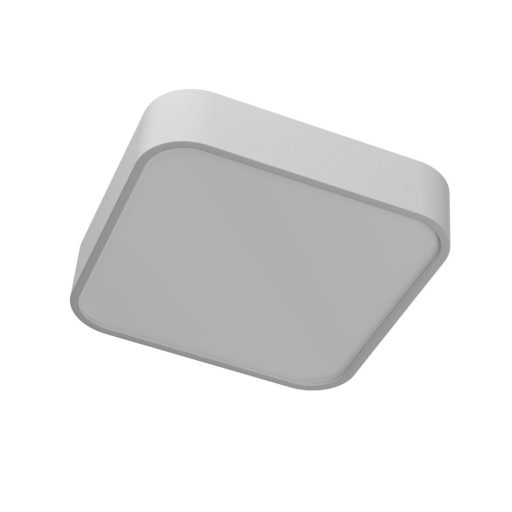Matt fehér színű fém vázas, fehér színű üveg búrás fürdőszobai mennyezeti lámpa 30W meleg fehér fényű beépített LED fényforrással, IP44-es védelemmel.