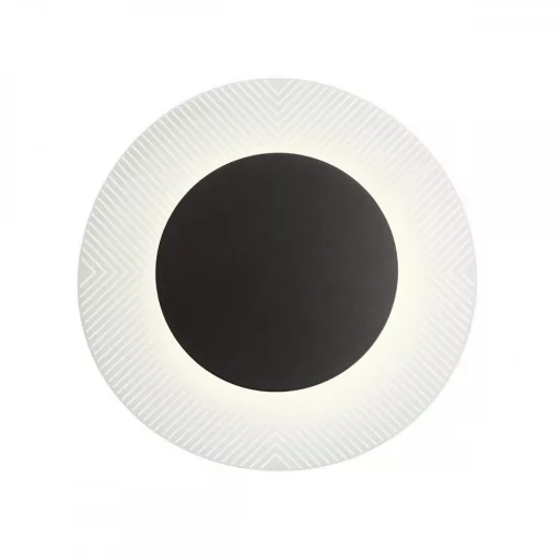 Matt fekete színű fém vázas fali lámpa szitanyomott PMMA betéttel, beépített meleg fehér színhőmérsékletű LED fényforrással, indirekt fényszórással.