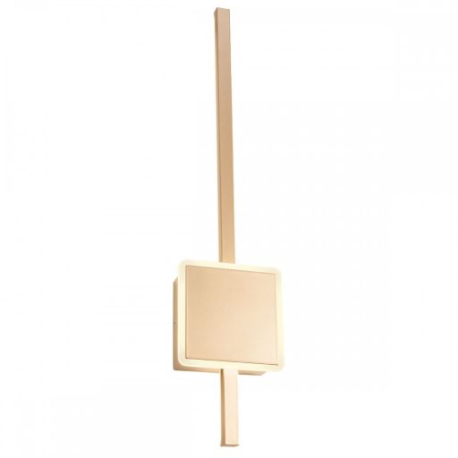 Matt arany színű fém és alumínium vázas fali lámpa akril és szilikon betéttel. A lámpa a központi elem szélén és a rúd hátulján világít, összesen 20W, meleg fehér fényű beépített LED fényforrást tartalmaz.