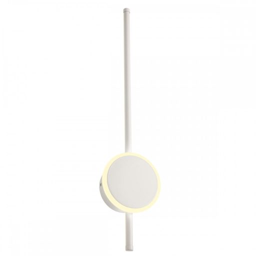 Matt fehér színű fém és alumínium vázas fali lámpa akril és szilikon betéttel. A lámpa a központi elem szélén és a rúd hátulján világít, összesen 18W, meleg fehér fényű beépített LED fényforrást tartalmaz.