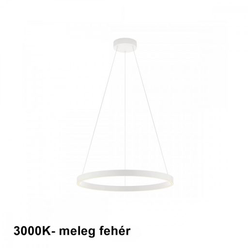Matt fehér színű fém vázas függeszték lámpa matt fehér alumínium, szilikon betétes, 60cm átmérőjű búrával, meleg fehér színhőmérsékletű beépített LED fényforrással. A lámpa fényere fali kapcsoló segítségével 3 lépcsőben állítható.