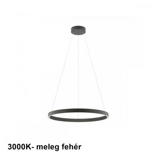 Matt fekete színű fém vázas függeszték lámpa matt fekete színű alumínium, szilikon betétes, 60cm átmérőjű búrával, meleg fehér színhőmérsékletű beépített LED fényforrással. A lámpa fényere fali kapcsoló segítségével 3 lépcsőben állítható.