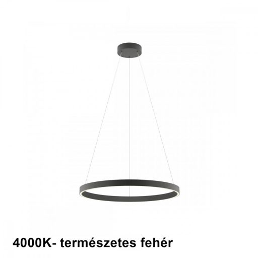 Matt fekete színű fém vázas függeszték lámpa matt fekete színű alumínium, szilikon betétes, 60cm átmérőjű búrával, természetes fehér színhőmérsékletű beépített LED fényforrással. A lámpa fényere fali kapcsoló segítségével 3 lépcsőben állítható.