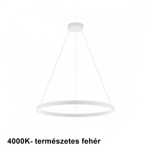 Matt fehér színű fém vázas függeszték lámpa matt fehér alumínium, szilikon betétes, 80cm átmérőjű búrával, természetes fehér színhőmérsékletű beépített LED fényforrással. A lámpa fényere fali kapcsoló segítségével 3 lépcsőben állítható.