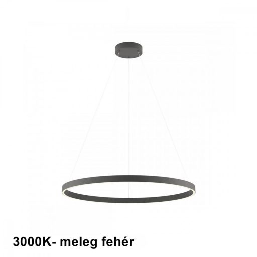 Matt fekete színű fém vázas függeszték lámpa matt fekete színű alumínium, szilikon betétes, 80cm átmérőjű búrával, meleg fehér színhőmérsékletű beépített LED fényforrással. A lámpa fényere fali kapcsoló segítségével 3 lépcsőben állítható.