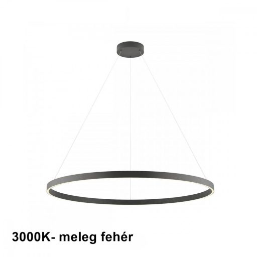 Matt fekete színű fém vázas függeszték lámpa matt fekete színű alumínium, szilikon betétes, 100cm átmérőjű búrával, meleg fehér színhőmérsékletű beépített LED fényforrással. A lámpa fényere fali kapcsoló segítségével 3 lépcsőben állítható.
