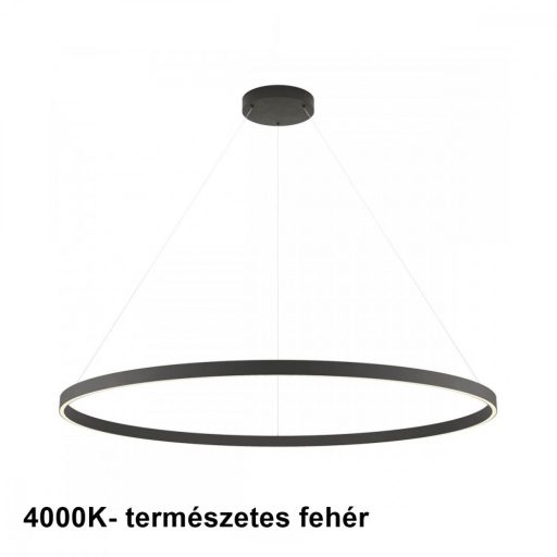 Matt fekete színű fém vázas függeszték lámpa matt fekete színű alumínium, szilikon betétes, 120cm átmérőjű búrával, természetes fehér színhőmérsékletű beépített LED fényforrással. A lámpa fényere fali kapcsoló segítségével 3 lépcsőben állítható.