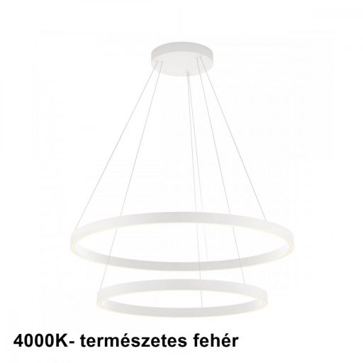 Matt fehér színű fém vázas függeszték lámpa matt fehér alumínium, szilikon betétes, 60 és 80cm átmérőjű búrákkal, természetes fehér színhőmérsékletű beépített LED fényforrással. A lámpa fényere fali kapcsoló segítségével 3 lépcsőben állítható.