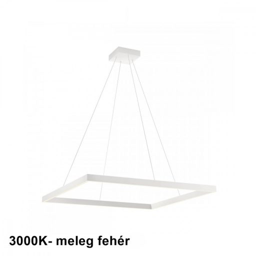 Matt fehér színű fém vázas függeszték lámpa matt fehér alumínium, szilikon betétes, 80cm széles búrával, meleg fehér színhőmérsékletű beépített LED fényforrással. A lámpa fényere fali kapcsoló segítségével 3 lépcsőben állítható.