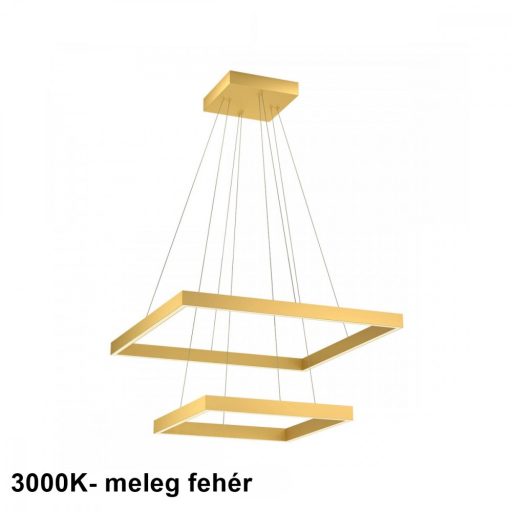 Matt arany színű fém vázas függeszték lámpa matt arany színű alumínium, szilikon betétes, 40 és 60cm széles búrákkal, meleg fehér színhőmérsékletű beépített LED fényforrással. A lámpa fényere fali kapcsoló segítségével 3 lépcsőben állítható.