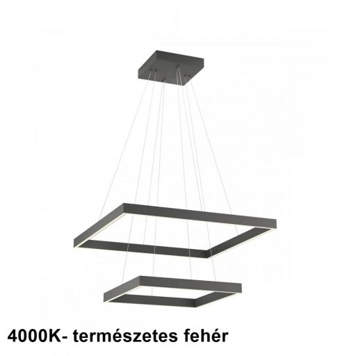 Matt fekete színű fém vázas függeszték lámpa matt fekete színű alumínium, szilikon betétes, 40 és 60cm széles búrákkal, természetes fehér színhőmérsékletű beépített LED fényforrással. A lámpa fényere fali kapcsoló segítségével 3 lépcsőben állítható.