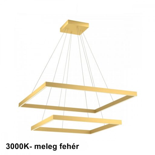 Matt arany színű fém vázas függeszték lámpa matt arany színű alumínium, szilikon betétes, 60 és 80cm széles búrákkal, meleg fehér színhőmérsékletű beépített LED fényforrással. A lámpa fényere fali kapcsoló segítségével 3 lépcsőben állítható.