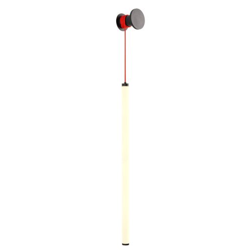 Matt fekete színű fém vázas fali lámpa piros színű textil kábellel, opálos acryl búrával, beépített LED fényforrással. A lámpa színhőmérséklete felszereléskor választaható 3000-4000K között (meleg, természetes). A lámpa fényereje fali kapcsoló segítségével 3 lépcsőben állítható. A lámpa lelógása a textil feltekerésével csökkenthető, kábel hossza 150cm.