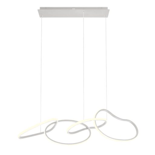 Matt fehér színű alumínium és fém függeszték lámpa PVC betétes búrával, összesen 90W beépített LED fényforrással. A lámpa fényereje fali kapcsoló segítségével 3 lépcsőben kapcsolható. A lámpa színhőmérséklete felszereléskor választaható 3000-4500-6500K között (meleg, természetes, hideg).