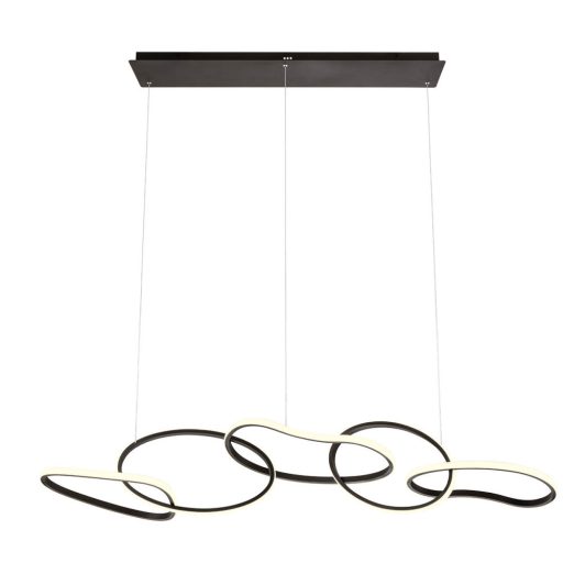 Matt fekete színű alumínium és fém függeszték lámpa PVC betétes búrával, összesen 120W beépített LED fényforrással. A lámpa fényereje fali kapcsoló segítségével 3 lépcsőben kapcsolható. A lámpa színhőmérséklete felszereléskor választaható 3000-4500-6500K között (meleg, természetes, hideg).