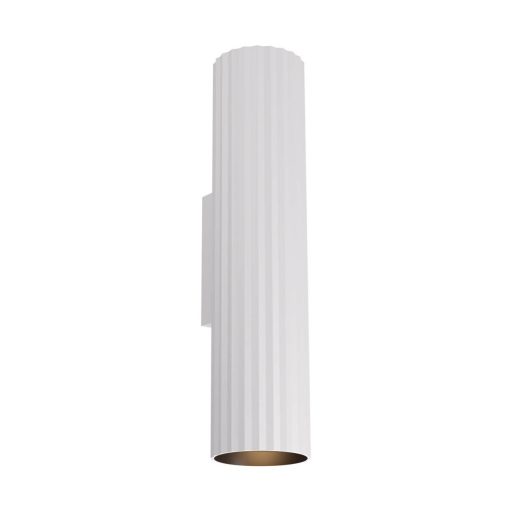 Matt fehér színű fém vázas fali lámpa bordázott kívűl matt fehér, belül matt fekete színű alumínium búrával, 2db GU10-es foglalattal.