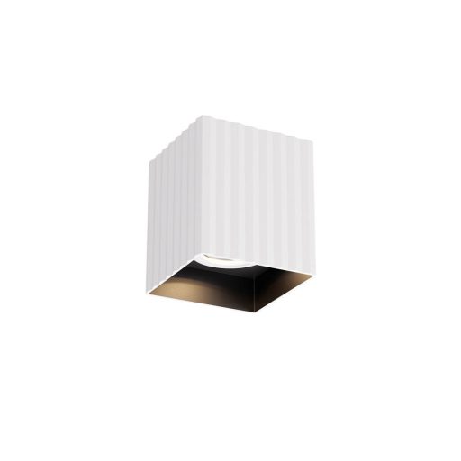 Matt fehér színű fém vázas spot lámpa bordázott, kívűl matt fehér, belül matt fekete színű alumínium búrával, fix fejjel, 1db GU10-es foglalattal.