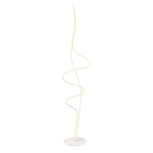 Matt fehér színű fém és alumínium légies megjelenésű álló lámpa fehér PVC betétes, íves búrával, meleg fehér színhőmérsékletű beépített LED fényforrással. A lámpa taposó kapcsolóval rendelkezik.