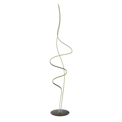 Matt fekete színű fém és alumínium légies megjelenésű álló lámpa fehér PVC betétes, íves búrával, meleg fehér színhőmérsékletű beépített LED fényforrással. A lámpa taposó kapcsolóval rendelkezik.