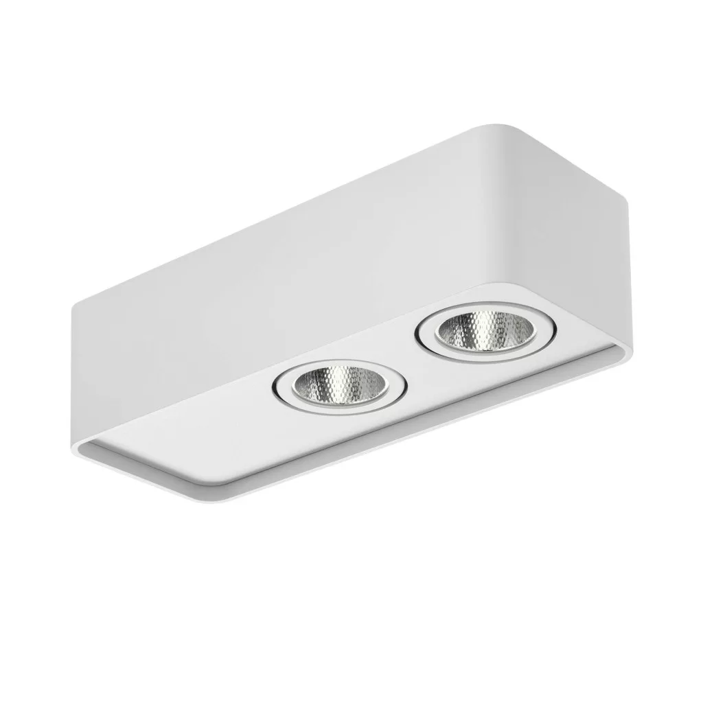 Matt fehér színű fém mennyezeti spot lámpa 2db 36 fokban billethető lencsével, meleg fehér (3000K) színhőmérsékletű beépített LED fényforrással. Triac változat, egy külön vásárolható speciális kapcsoló segítségével fényerőszabályozható. A kapcsolóról érdeklődjön ügyfélszolgálatunkon.