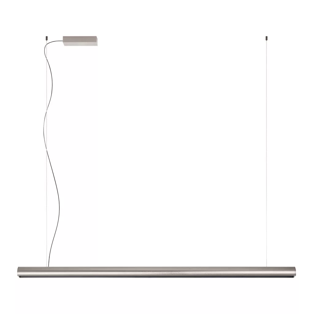 150cm hosszú, ködös nikkel színű alumínium függesztett lámpa szaténos műanyag betéttel, beépített LED fényforrással. A termék színhőmérséklete meleg vagy természetes fehér fényre változtatható illete a fényereje szabályozható érintés nélküli, intuitív gesztusos vezérléssel.