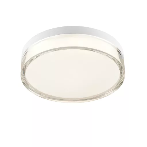 23cm átmérőjű, fehér színű fém vázas mennyezeti lámpa kívül átlátszó, belül opálos PMMA búrával, változtatható, meleg vagy természetes fehér(3000/4000K) színhőmérsékletű beépített LED fényforrással, IP44-es védelemmel.
