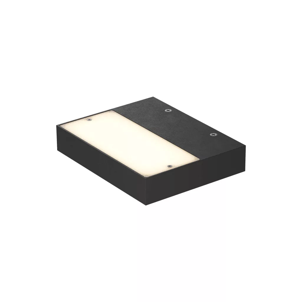 16,3cm széles, matt fekete színűre festett alumínium fali lámpa a fény lágyítására szolgáló szaténos polikarbonát búrával, beépített, meleg fehér színhőmérsékletű LED fényforrással. A lámpa fényereje nem szabályozható.