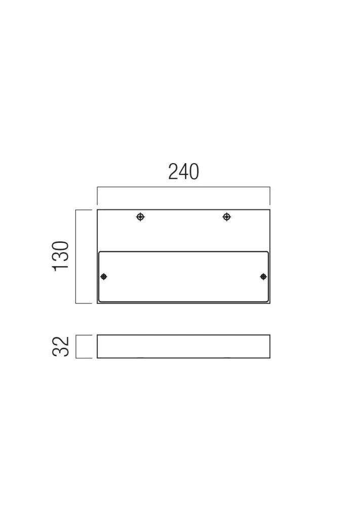 24cm széles, matt fekete színűre festett alumínium fali lámpa a fény lágyítására szolgáló szaténos polikarbonát búrával, beépített, meleg fehér színhőmérsékletű LED fényforrással. A lámpa fényereje nem szabályozható.
