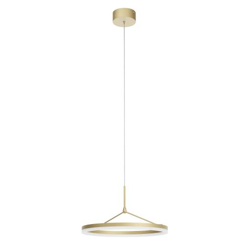 Bronz színű fém függesztett lámpa opálos acryl betétes 40cm átmérőjű, gyűrű alakú búrával, meleg fehér színhőmérsékletű beépített LED fényforrással. Triac változat, egy külön vásárolható speciális kapcsoló segítségével fényerőszabályozható. A kapcsolóról érdeklődjön ügyfélszolgálatunkon.
