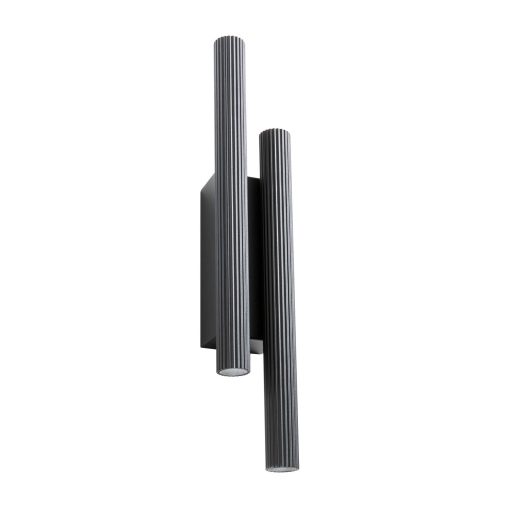 Matt fekete színű fém és alumínium fali lámpa 2db 30cm hosszú fejjel, meleg színhőmérsékletű beépített LED fényforrással. A lámpa felfelé és lefelé egyaránt világít.