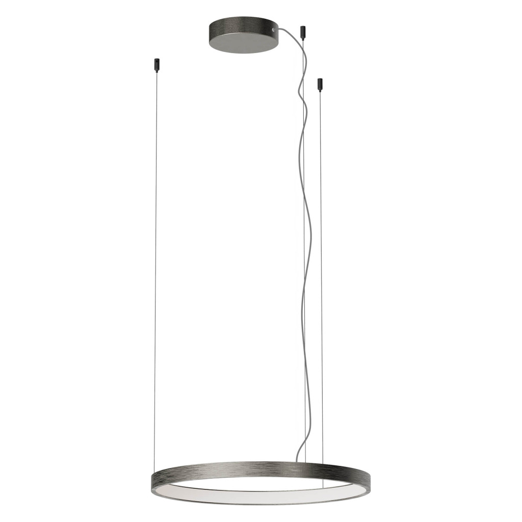 Kerek függesztett lámpa ködös nikkel színű fém és alumínium vázzal, 50cm átmérőjű opálos szilikon betétes búrával, beépített LED fényforrással. A lámpa színhőmérséklete állítható meleg, vagy természetes fehér (2700/3000/4000K) színre. A lámpa Dali világításvezérelt hálózatra kötve fényerőszabályozható. Dali rendszer különálló lámpák és világítási csoportok vezérlésére alkalmas rendszer. Ennek kiépítéséről kérje villanyszerelő szakember segítségét.