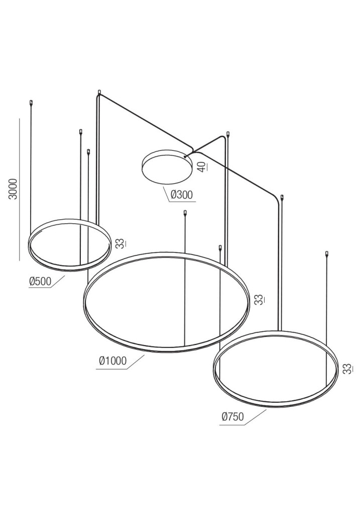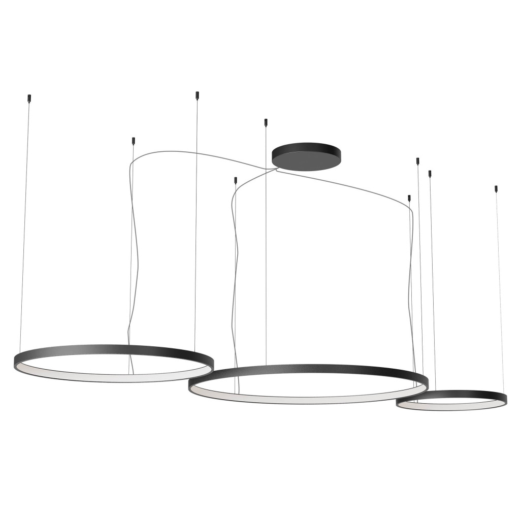 Kerek függesztett lámpa matt fekete színű fém és alumínium vázzal, 50, 75 és 100cm átmérőjű opálos szilikon betétes búrával, beépített LED fényforrással. A lámpa színhőmérséklete állítható meleg, vagy természetes fehér (2700/3000/4000K) színre. A lámpa Dali világításvezérelt hálózatra kötve fényerőszabályozható. Dali rendszer különálló lámpák és világítási csoportok vezérlésére alkalmas rendszer. Ennek kiépítéséről kérje villanyszerelő szakember segítségét.