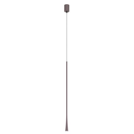 Matt kávé színű alumínium függesztett lámpa 80cm magas, 3,2cm átmérőjű búrával, alul a fény lágyítására szolgáló műanyag lappal. A lámpa extra meleg fehér színhőmérsékletű beépített LED fényforrással rendelkezik. A lámpához külön vásárolható más mennnyezetrózsa, amivel akár 3-5-10-15 ágú függeszték is készíthető a lámpából.