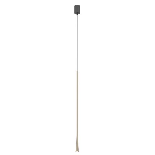 Ezüstös kávé színű alumínium függesztett lámpa 80cm magas, 3,2cm átmérőjű búrával, alul a fény lágyítására szolgáló műanyag lappal. A lámpa extra meleg fehér színhőmérsékletű beépített LED fényforrással rendelkezik. A lámpához külön vásárolható más mennnyezetrózsa, amivel akár 3-5-10-15 ágú függeszték is készíthető a lámpából.
