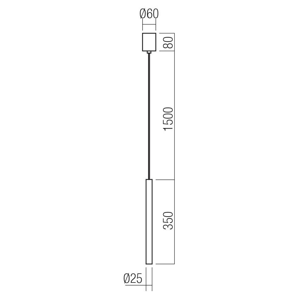 Matt fehér színű alumínium függesztett lámpa 35cm magas, 2,5cm átmérőjű búrával, alul a fény lágyítására szolgáló műanyag lappal. A lámpa extra meleg fehér színhőmérsékletű beépített LED fényforrással rendelkezik. A lámpához külön vásárolható más mennnyezetrózsa, amivel akár 3-5-10-15 ágú függeszték is készíthető a lámpából.