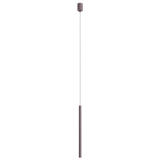 Matt kávé színű alumínium függesztett lámpa 55cm magas, 2,5cm átmérőjű búrával, alul a fény lágyítására szolgáló műanyag lappal. A lámpa extra meleg fehér színhőmérsékletű beépített LED fényforrással rendelkezik. A lámpához külön vásárolható más mennnyezetrózsa, amivel akár 3-5-10-15 ágú függeszték is készíthető a lámpából.