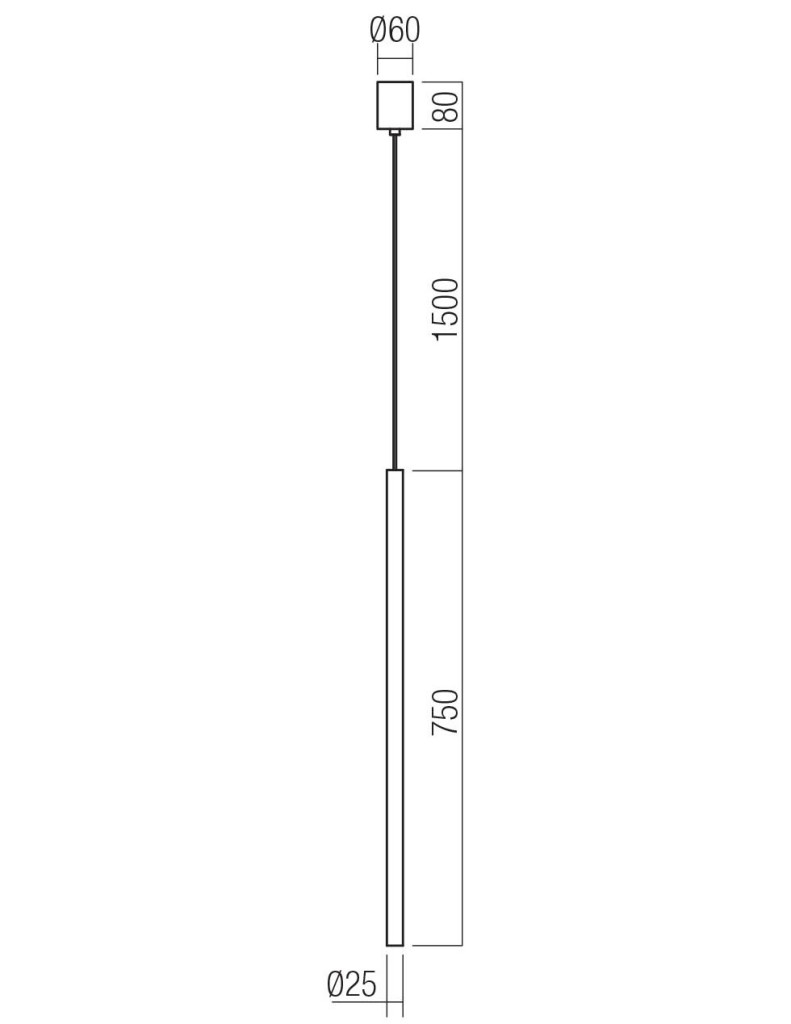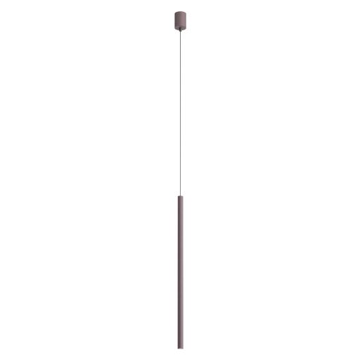 Matt kávé színű alumínium függesztett lámpa 75cm magas, 2,5cm átmérőjű búrával, alul a fény lágyítására szolgáló műanyag lappal. A lámpa meleg fehér színhőmérsékletű beépített LED fényforrással rendelkezik. A lámpához külön vásárolható más mennnyezetrózsa, amivel akár 3-5-10-15 ágú függeszték is készíthető a lámpából.