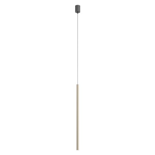Ezüstös kávé színű alumínium függesztett lámpa 75cm magas, 2,5cm átmérőjű búrával, alul a fény lágyítására szolgáló műanyag lappal. A lámpa extra meleg fehér színhőmérsékletű beépített LED fényforrással rendelkezik. A lámpához külön vásárolható más mennnyezetrózsa, amivel akár 3-5-10-15 ágú függeszték is készíthető a lámpából.